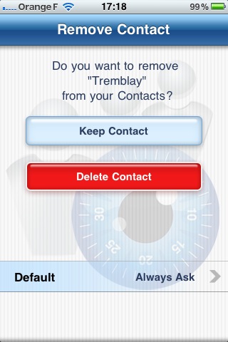 - choisir de conserver le contact dans le carnet d’adresses d’origine en cliquant sur le bouton « Keep Contact » ou de le supprimer du carnet d’adresses d’origine en cliquant sur le bouton « Delete Contact » ;