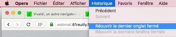 • il n’est pas possible de rouvrir rapidement le dernier onglet utilisé, comme avec Opera (image 3) ; en revanche, comme sous Opera, Vivaldi affiche les heures d’ouverture des onglets précédemment utilisés (images 4 & 6) ; en fait, en cliquant sur l’icône « Poubelle », on accède aux derniers onglets consultés (image 8) ;
