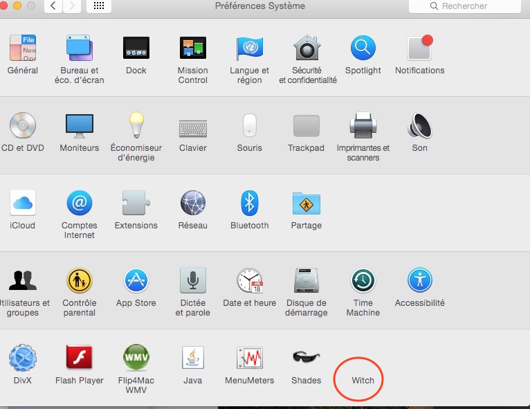 Ces difficultés seraient dues à Mac OS X qui n’ajouterait pas le « démon » de Witch au panneau de Préférences Système.