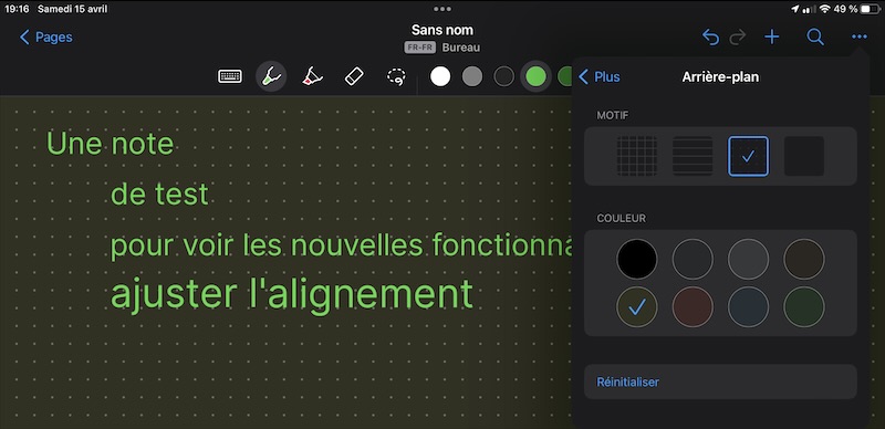 Avec les précédentes versions, on pouvait déjà chosir le fond des Notes et des Documents : la couleur mais aussi le type : quadrillage, lignes…