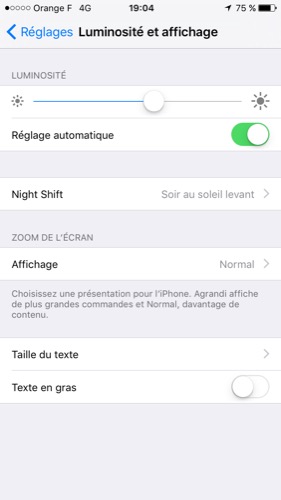 En effet, si sur un Mac, il était possible d’installer une application telle f.lux, qui fait évoluer automatiquement la teinte de l’écran vers l’orange en fonction de la lumière du jour – la lumière bleue de nos écrans étant réputée nocive – aucune installation de ce genre n’était possible sous iOS avant cette nouvelle version du système.