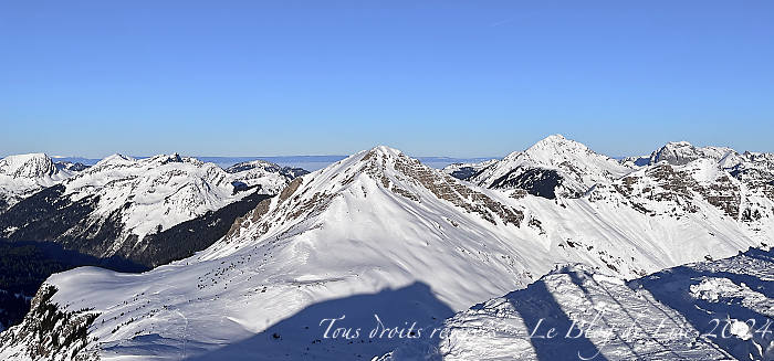Nous sommes monté•es aujourd’hui jusqu’à la Pointe des Mossettes, à 2 252 m d’altitude, avec notamment une vue sur la pointe de Chésery (photo 2). Les trois derniers clichés ont été pris juste en dessous du télésiège du Cornebois, sur le domaine de Châtel. Le lac Léman paraît sous les nuages !