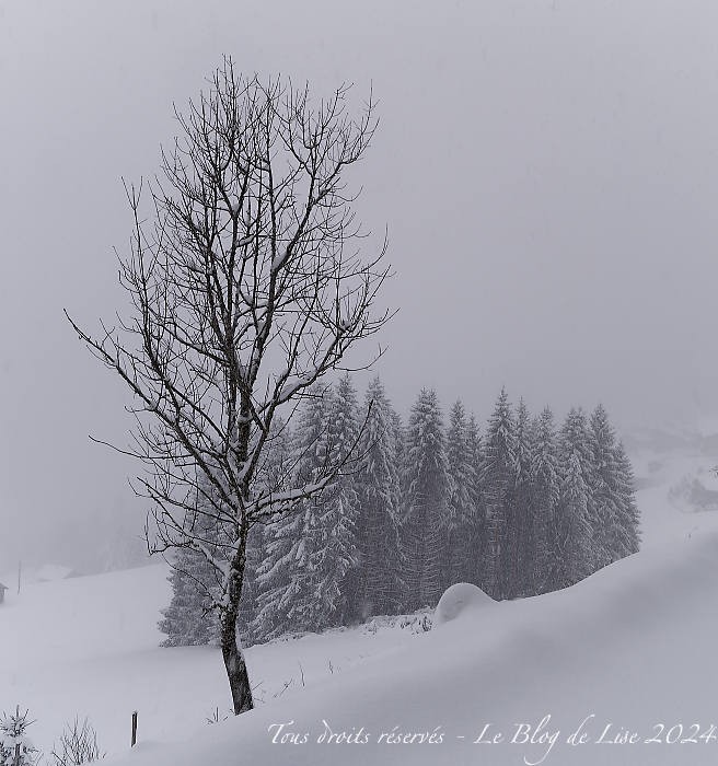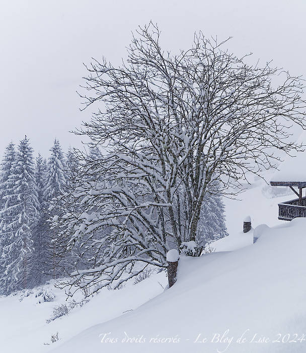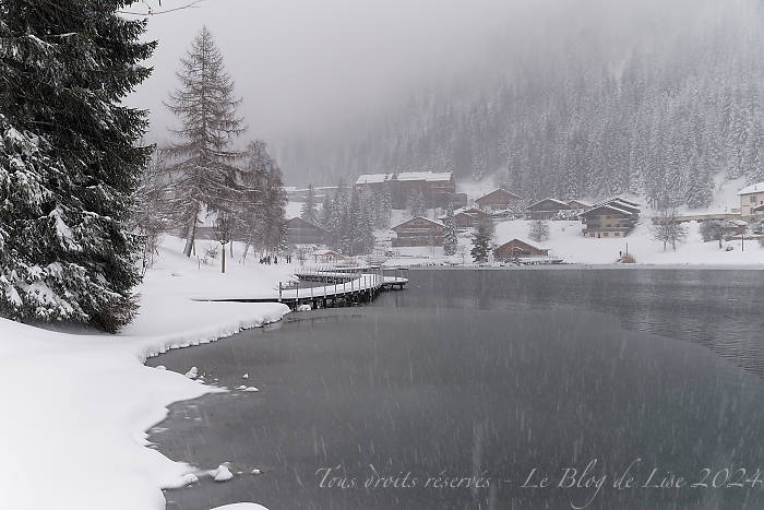 Il a neigé en abondance toute la nuit ! En raison du manque de visibilité, je ne suis pas allée skier (!), je me suis baladée aux alentours du lac de Vonnes.