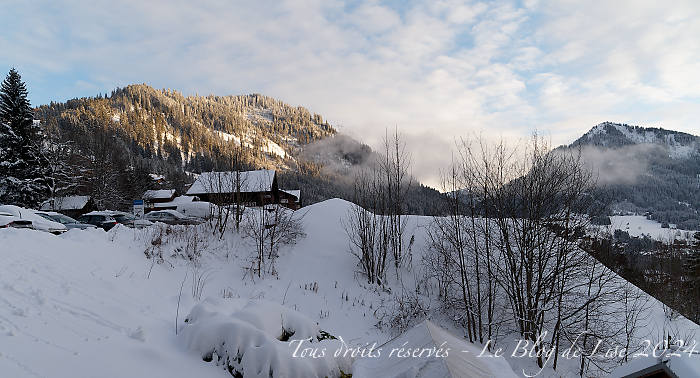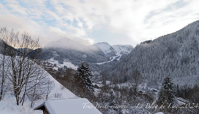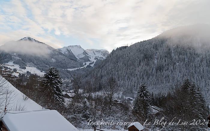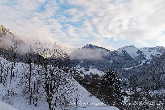 En général, le 25 décembre au matin, il n’y pas trop de monde sur les pistes 🙂 Je suis allée sur Avoriaz, depuis le domaine de Châtel. Le vent soufflait assez fort et la neige flottait sur les sommets voire sur les pistes ! (image 2 et la mini vidéo). En fin d’après-midi, nous avons bénéficié encore une fois d’une belle lumière.