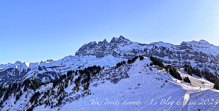 Depuis le domaine de Châtel, j’ai pris la direction d’Avoriaz, puis des Crosets et de Planachaux, d’où j’avais une belle vue sur les Dents du Midi !