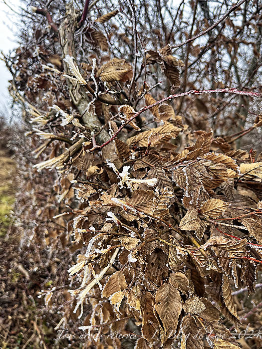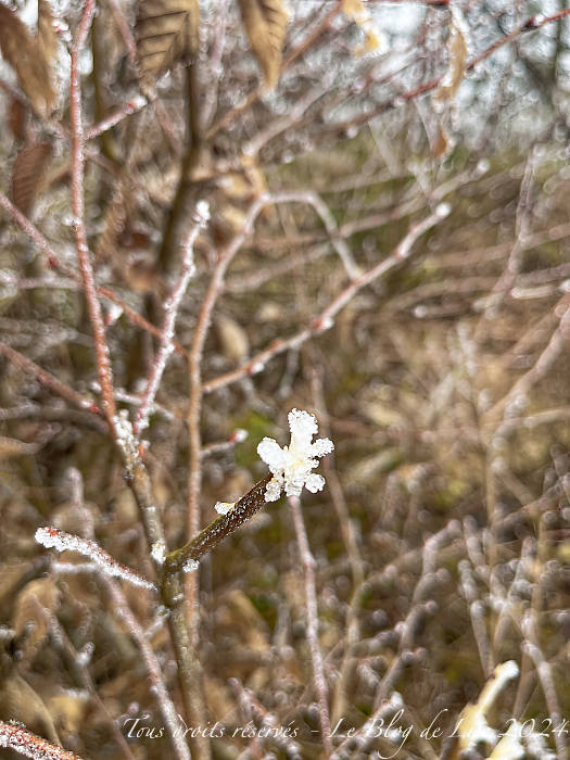 Les flocons ont tout recouvert ! J’ai fini par sortir avant que la nuit ne tombe… À la fin de ma balade, une timide éclaircie s’est montrée !