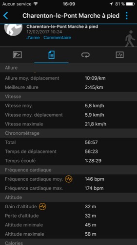 Sur l’iPhone, on accède également à la carte, et à l’ensemble des données relatives au parcours effectué :