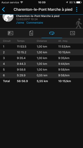 Au départ, l’enregistrement n’a pas démarré, mais m’en étant rendue compte rapidement, une très courte distance n’a pas été prise en compte.