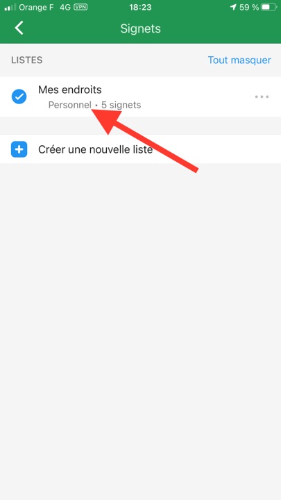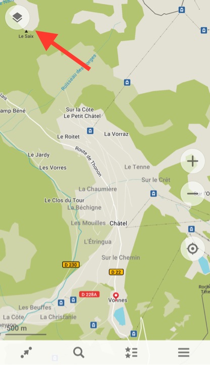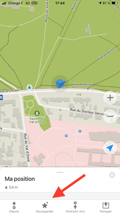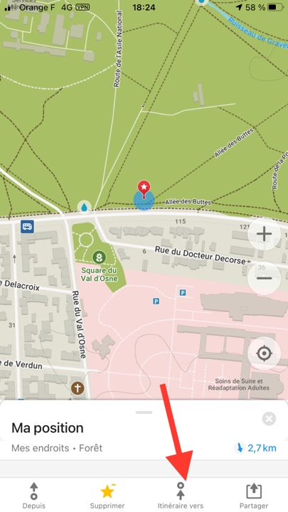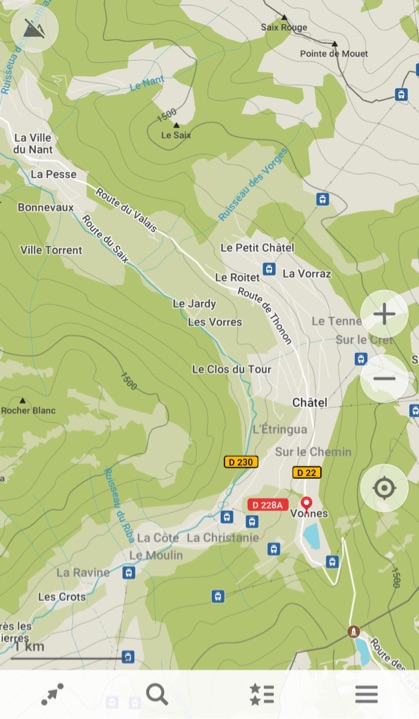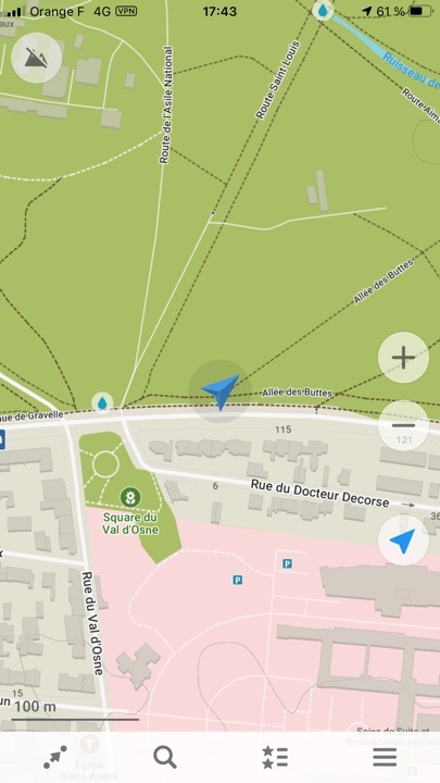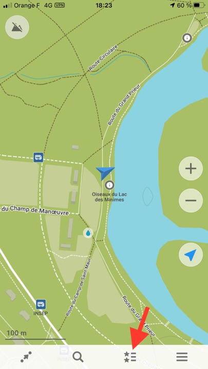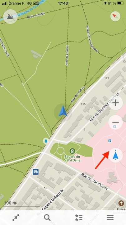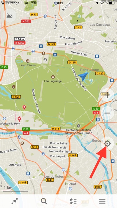 L’application nous géolocalise, on peut orienter la carte Nord-Sud, ou dans le sens de son trajet, enregistrer sa position.