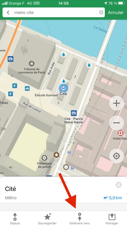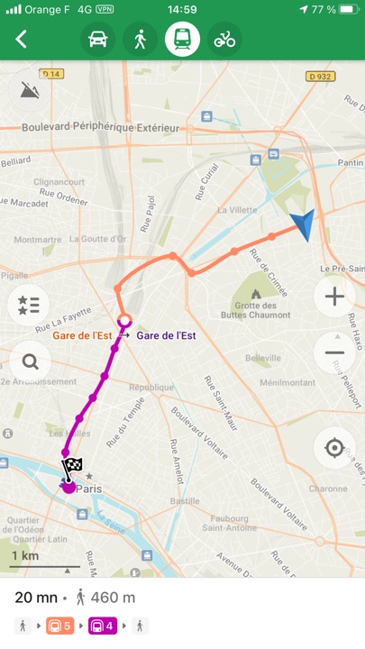 M’étant rendue à la Philharmonie de Paris voir l’exposition de Salgado sur l’Amazonie, et devant poursuivre mon après-midi par la visite du Tribunal de commerce de Paris (voir les articles suivants…), j’ai utilisé Organic Maps pour définir mon itinéraire.