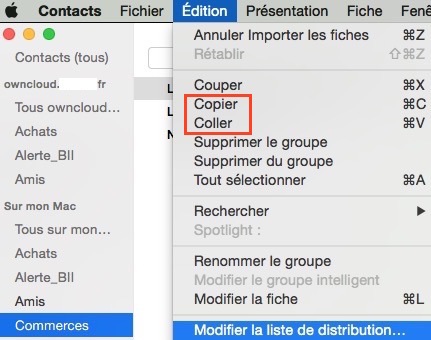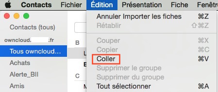 Sur le Mac, j’ai tout simplement copié chacun de mes groupes depuis le carnet d’adresses local que j’ai collés sous OwnCloud. Afin que les contacts se synchronisent sur l’ensemble des appareils, il faut parfois faire plusieurs essais. Je pense que la version 8 d’OwnCloud permet une synchronisation plus efficace.