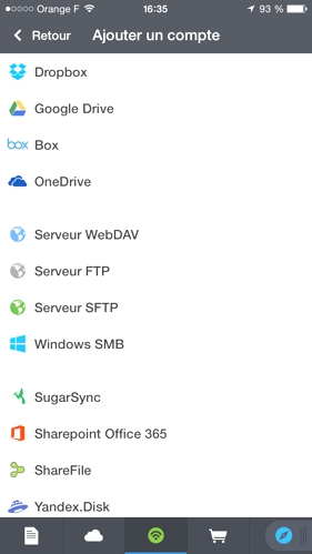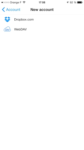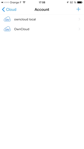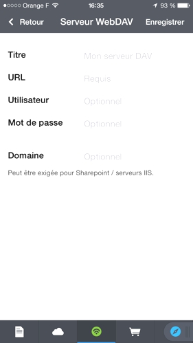 • effectuer un tap sur le ‘+’, puis sur « WebDAV »,
