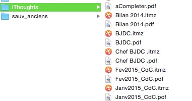Je retrouve sur le Mac les fichiers aux formats itmz et PDF. Les modifications apportées sur l’ordinateur ne seront prises en compte qu’à condition que les fichiers soient enregistrés dans le dossier de synchronisation.