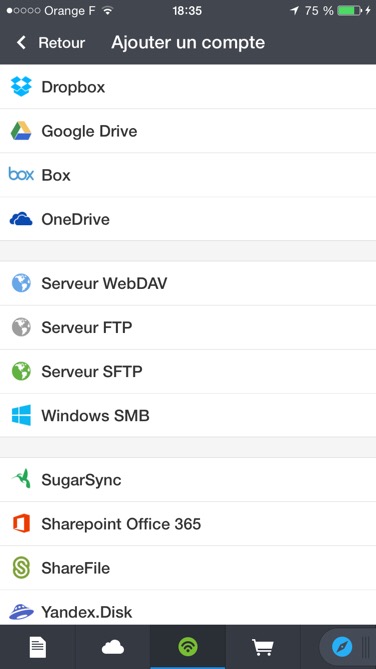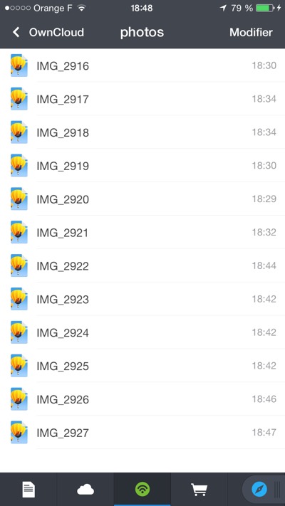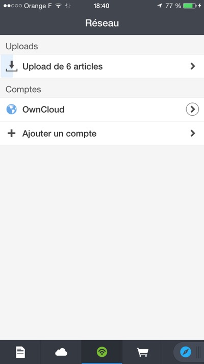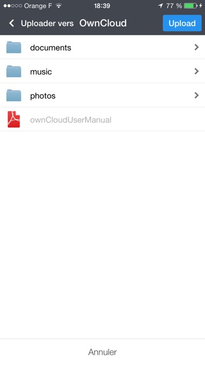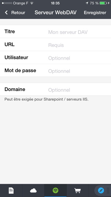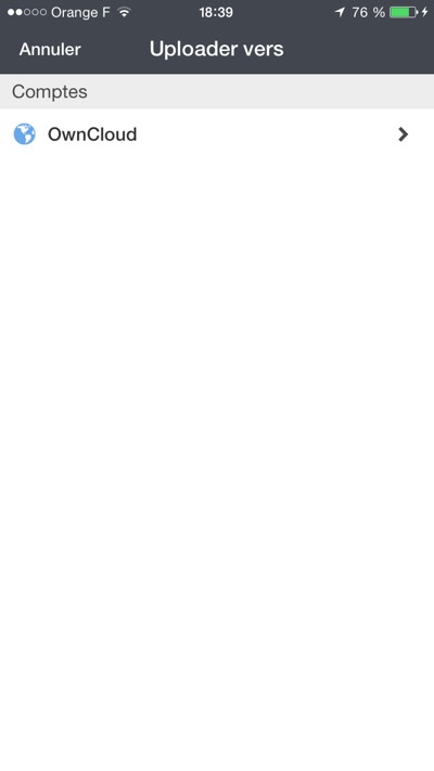 J’ai voulu néanmoins les télécharger sur mon serveur ownCloud. N’ayant pas acquis l’application ownCloud pour iPhone, j’ai utilisé l’application Documents (gratuite) de Readdle qui permet d’utiliser le protocole WebDAV.