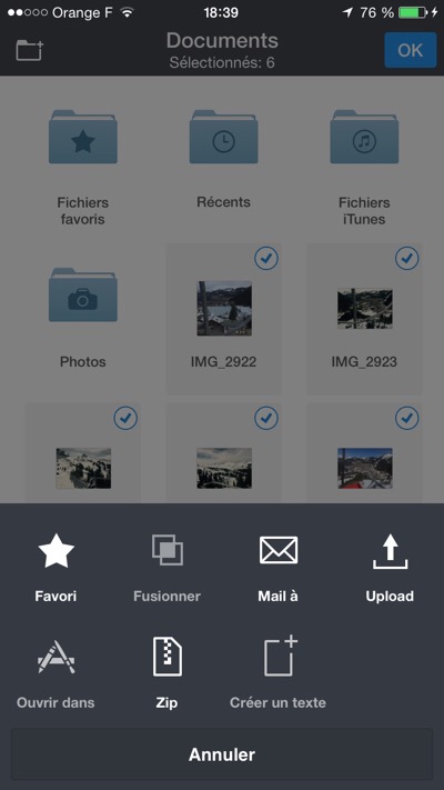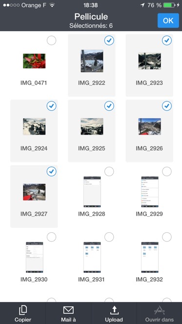 - sélectionner les photos puis effectuer un tap sur la dernière icône en bas de l’écran Actions ;