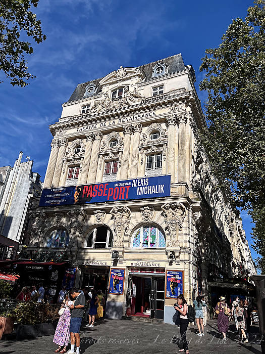 Bien que parisienne, et ayant fréquenté ce quartier pendant toute mon enfance, et bien plus tard, je ne connaissais pas le théâtre de la Renaissance. J’avais réservé pour cet après-midi, via theatreonline, une place pour Passeport, une création d’Alexis Michalik, une pièce qui questionne au sujet des migrants.
