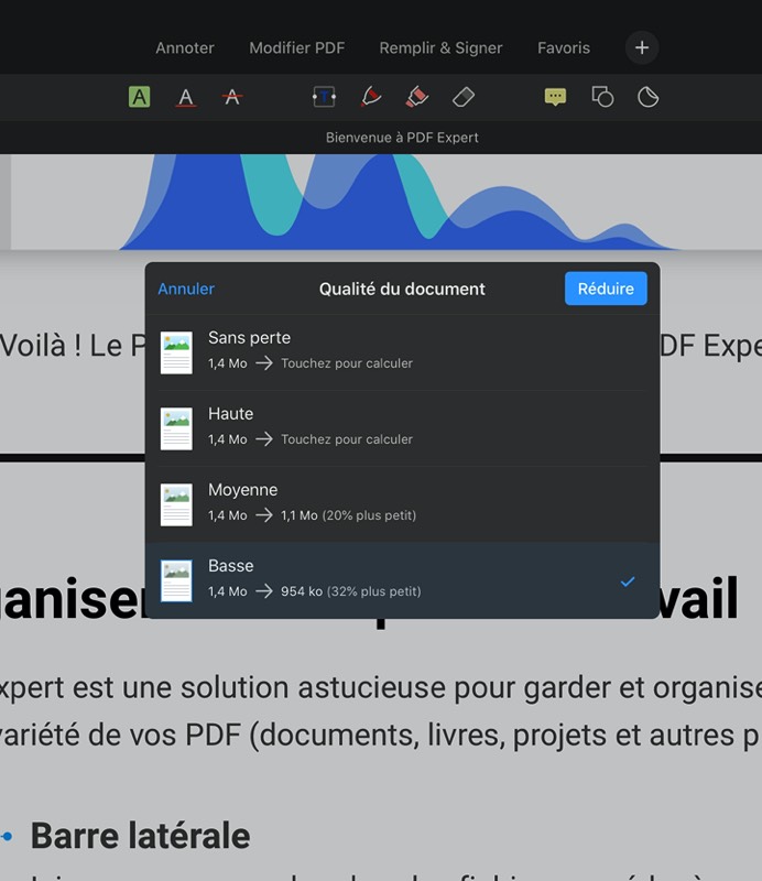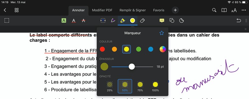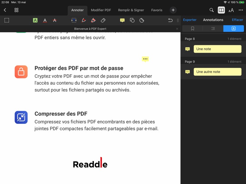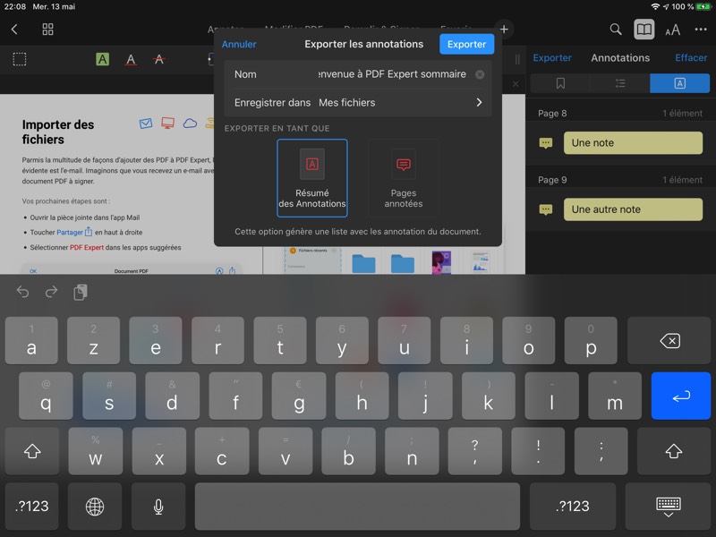 Évidemment, sur la tablette, PDF Expert constitue un lecteur très agréable. Mais bien sûr, son point fort est de pouvoir annoter souligner, surligner, modifier… du texte, au clavier ou au Pencil.