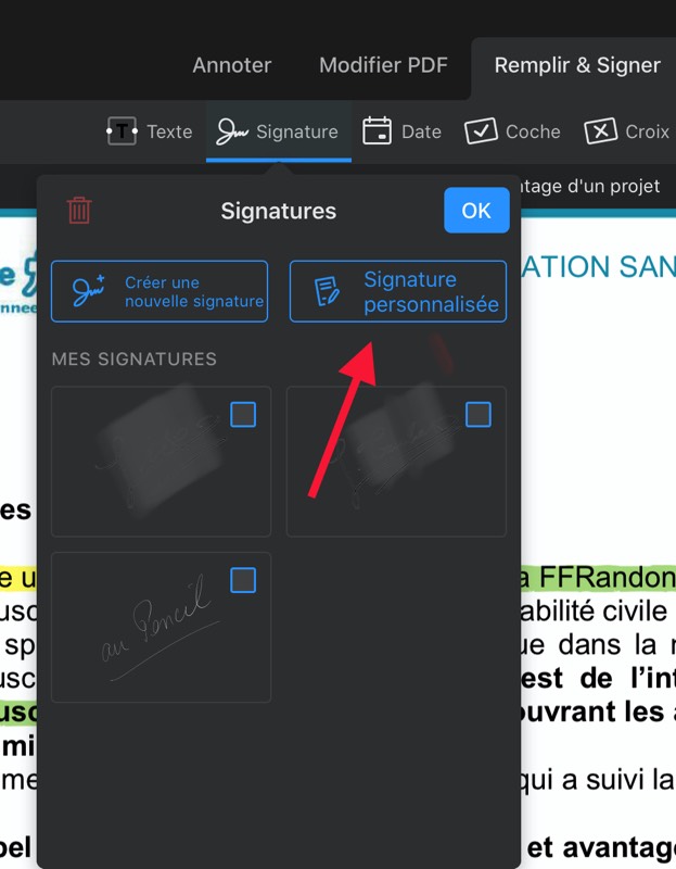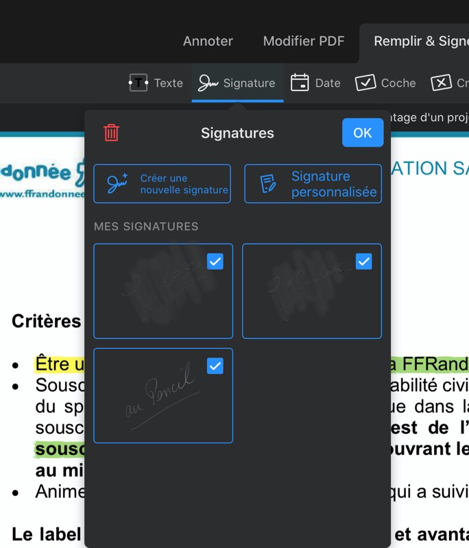 On peut enregistrer plusieurs signatures, plusieurs tampons sur un document et utiliser le Pencil !