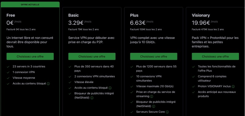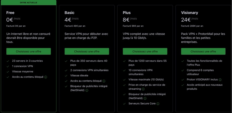 D’autres VPN proposent des IP fixes, c’est le cas de CyberghostVPN, NordVPN, PureVPN par exemple. Avant éventuellement de me décider pour l’un d’entre eux, j’ai essayé ProtonVPN, le seul VPN Open Source. ProtonVPN a été conçu par des scientifiques suisses, n’est pas à but lucratif et offre une version gratuite pour un seul appareil, financée par les contributions des clients payants.