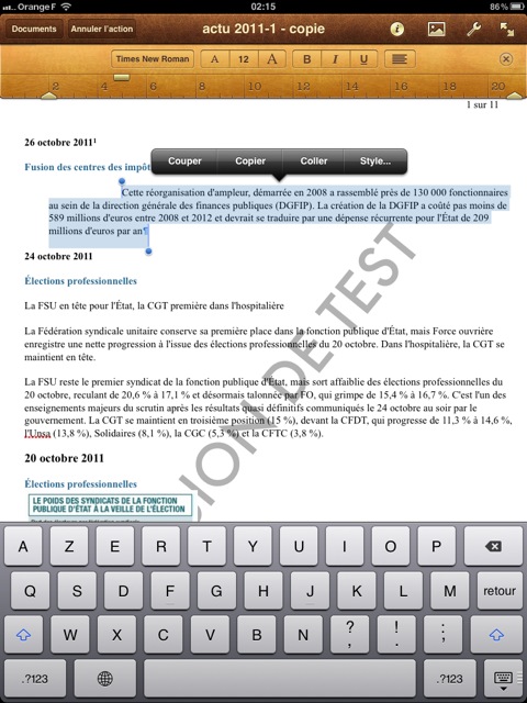 En écrivant le comparatif entre Documents To Go et Pages, j’ai été amenée à tester d’autres fonctionnalités du traitement de texte Pages pour iPad/iPhone.