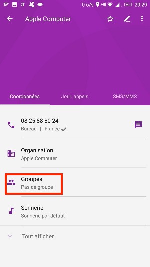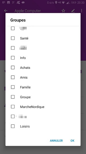 - Sous Android, bien que les groupes semblent synchronisés, chaque groupe affichant bien les contacts qui lui sont associés, lorsque qu’on clique sur un contact, aucun groupe n’apparaît dans sa fiche.