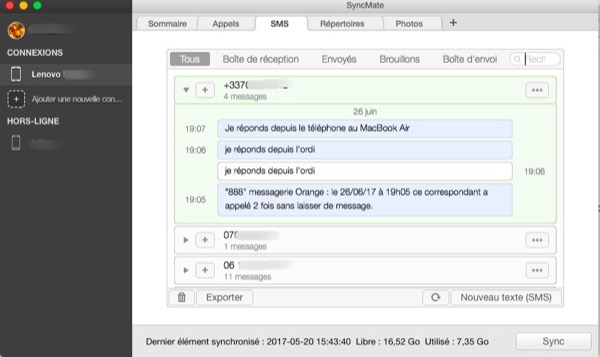 J’ai décrit SyncMate récemment (1), un logiciel avec lequel je peux sauvegarder et synchroniser certaines données entre mon Lenovo P2 sous Android et mes Macs. SyncMate permet aussi de recevoir et d’envoyer des SMS, cela fonctionne bien, mais à condition que l’un des appareils ne soit pas en veille….