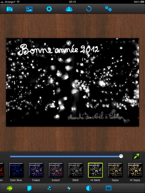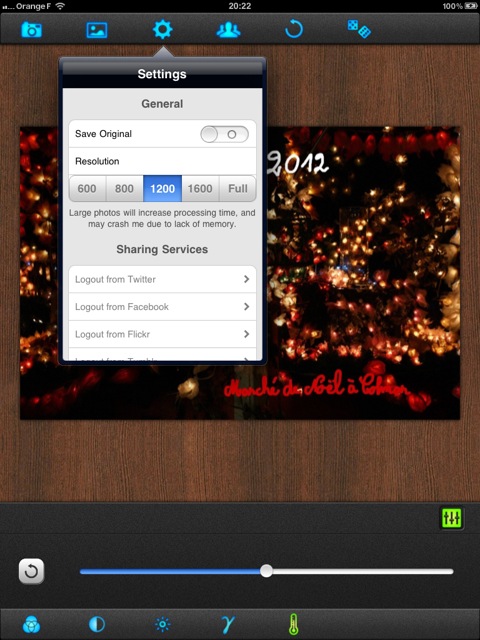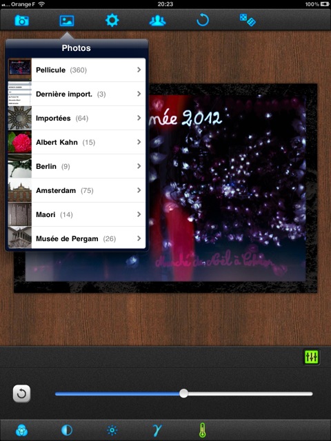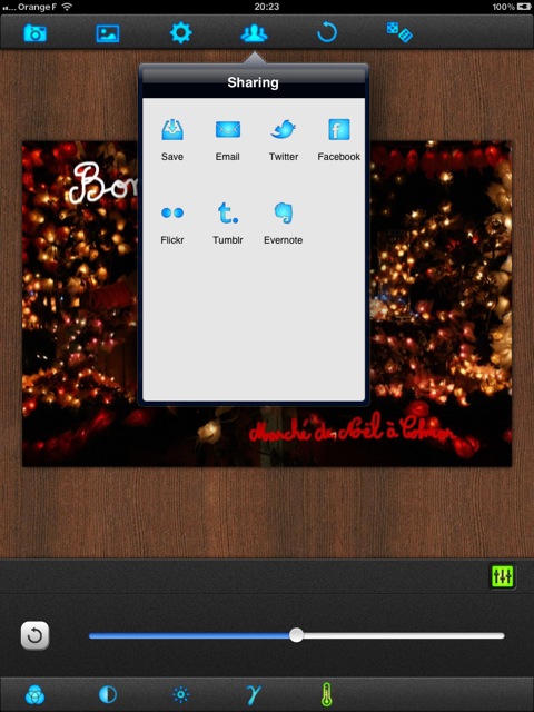 - iDarkroom est également une application commerciale (1,59 €) uniquement pour iPad et propose quelques réglages et effets ;