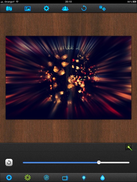 La troisième icône donne un effet de vitesse à la périphérie, l’effet se règle grâce à l’échelle.