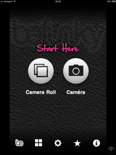 Comme avec chacune des applications décrites sur cette page, on peut ouvrir une photo ou en prendre une nouvelle.