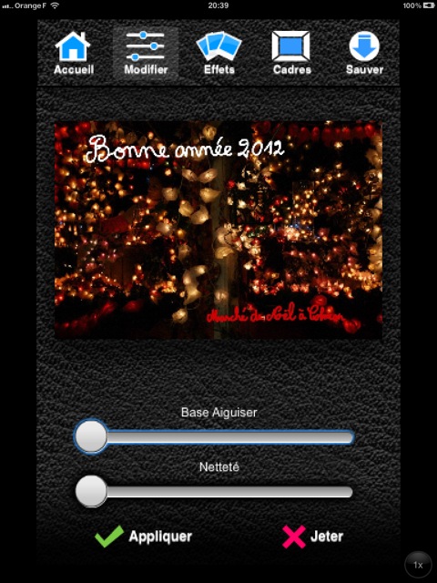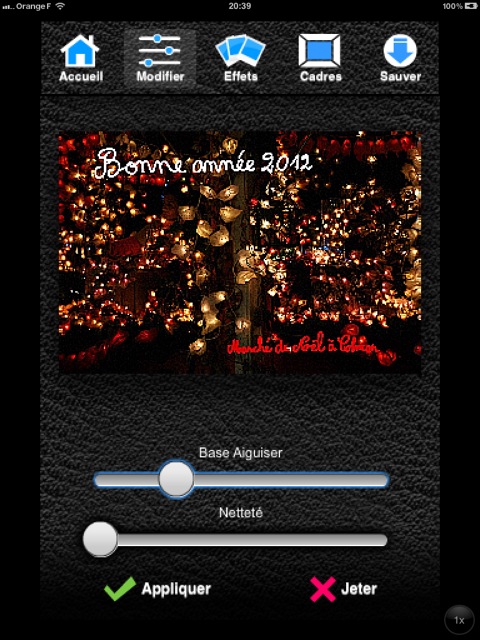 - Snapseed (1) est une application commerciale (3,99 €) pour iPhone et iPad, qui me semble être la plus appropriée pour effectuer des retouches d’images ;