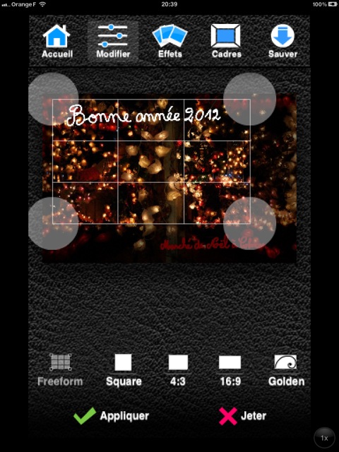 On peut rogner la photo manuellement ou appliquer des formats pré établis.