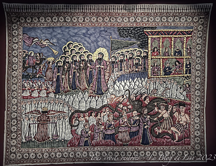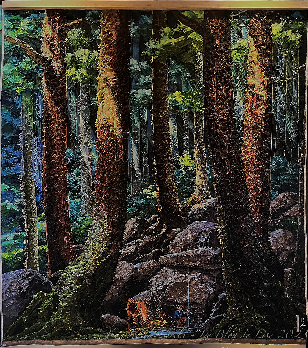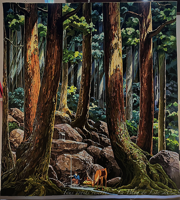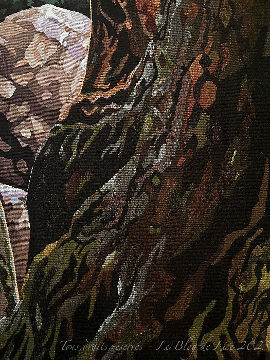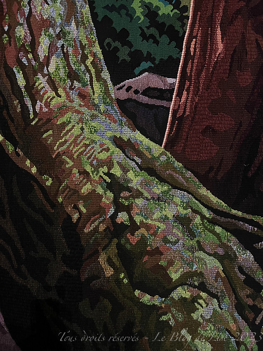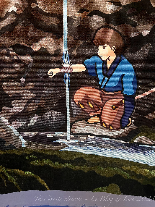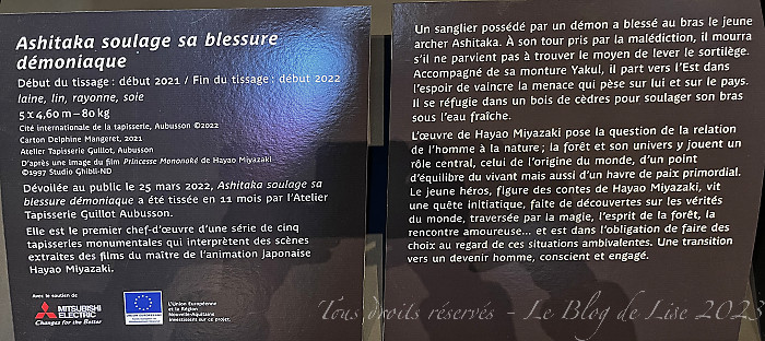 avant de terminer par la Tapisserie d’Aubusson, Ashitaka soulage sa blessure démoniaque, exposée dans le hall d’accueil du 20 juin au 27 août, et que j’ai photographiée aussi bien côté face que côté pile !