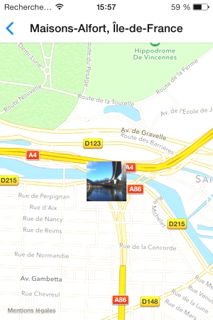 J’ai utilisé aujourd’hui une fonctionnalité qui offre la possibilité de prendre une photo depuis Runkeeper, puis de la visualiser sur une carte dans l’application Photos de l’iPhone.