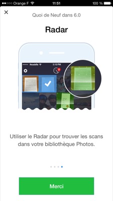 Comme son nom l’indique, Scanner Pro permet de numériser tout document, y compris des documents multipages. L’application détecte les bords automatiquement. Cette nouvelle version dispose d’une interface très conviviale et automatise la numérisation. Elle est compatible avec One Note et One Drive.