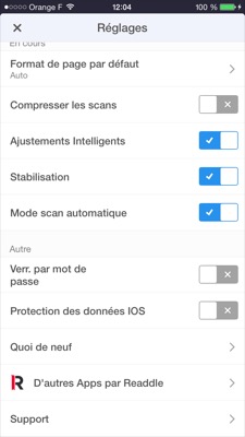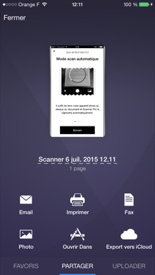 Tous les documents sont numérisés au format PDF, on peut y ajouter ou supprimer des pages, modifier l’ordre des pages. Scanner Pro accède à l’application Photo, ce qui permet d’ajouter des clichés pris avec n’importe quelle application Photo.