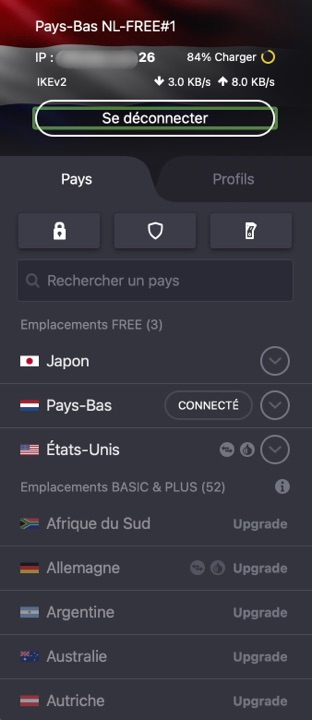 D’autre part, ProtonVPN permet de tester sa solution, compatible avec macOS, iOS, iPadOS, Android, Windows, Linux, gratuitement, avec des applications fonctionnelles ; la version gratuite est financée par les clients payants, et a comme limitation qu’on ne peut l’utiliser que sur deux appareils et qu’on n’accède qu’à trois serveurs, aux Pays-Bas, au Japon et aux Etats-Unis.