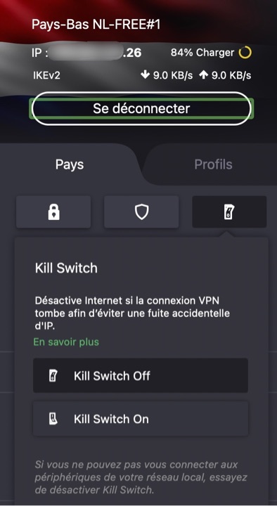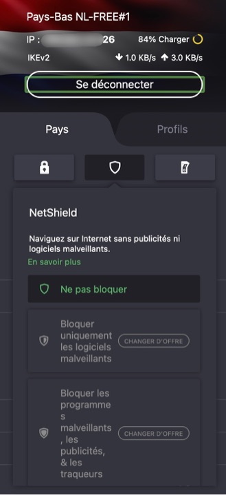 - les abonnements payants disposent d’autres fonctionnalités : les informations passent par plusieurs serveurs successifs, ce qui évite le « traçage », un blocage des publicités, des traqueurs et des logiciels malveillants, une suspension du réseau Internet en cas de dysfonctionnement/déconnexion du VPN…