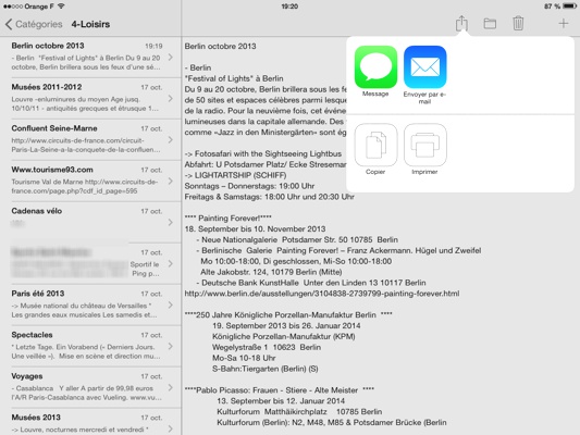- partager ses notes par mail ou SMS,