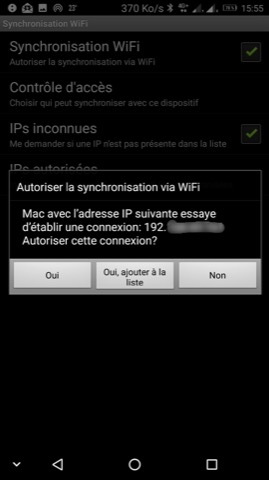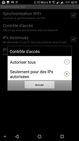 C’est sur le téléphone qu’on définit les modes de synchronisation et les adresses IP acceptés.