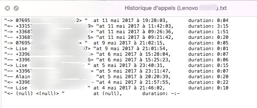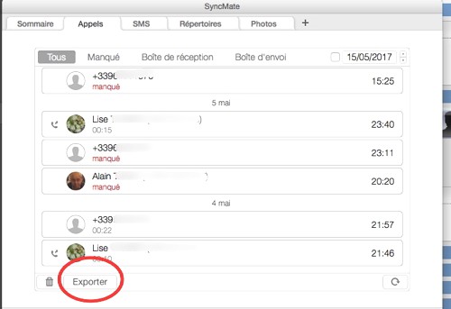 Depuis les onglets Appels ou SMS, on peut importer le journal des appels en mode texte, et des SMS, sous forme d’archive web.