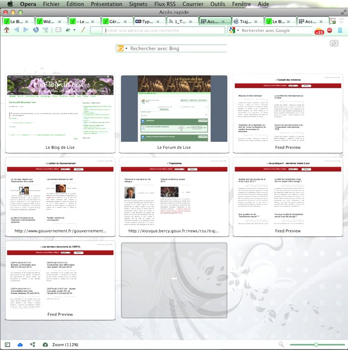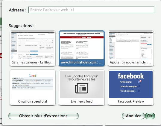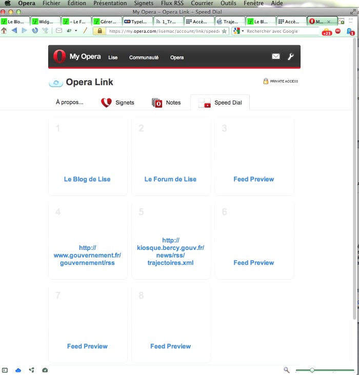 La synchronisation d’Opera Link est un peu curieuse : elle permet de synchroniser les signets entre Macs ou entre iPad/iPhone mais pas entre Mac et iPad/iPhone. En revanche, les Accès rapides (ou Speed dial) se synchronisent entre tous les appareils. Ceci est d’autant plus intéressant qu’il est plus rapide d’ouvrir une page depuis ces Accès rapides que depuis les signets sur un iPad/iPhone.