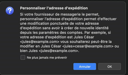 Il est possible de créer une identité pour utiliser un de ces alias, et lui attribuer une signature particulière par exemple, comme je l’indiquais dans l’article précédent.