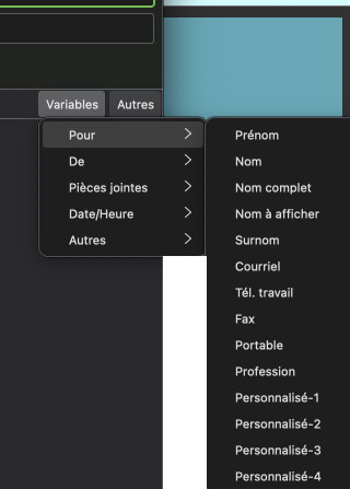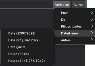Comme lors de la rédaction de modèles (voir l’article précédent), on dispose de variables (images 4 & 5).
