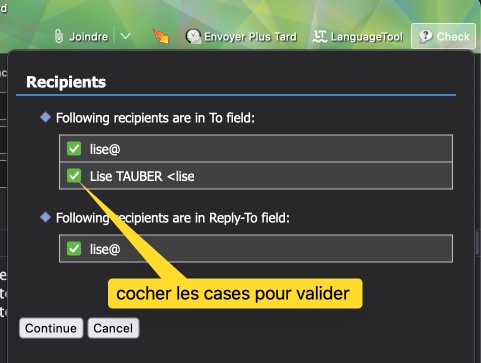 J’ai installé une petite extension pour Thunderbird, Check and Send, qui permet de vérifier le contenu du message avant de l’envoyer.
