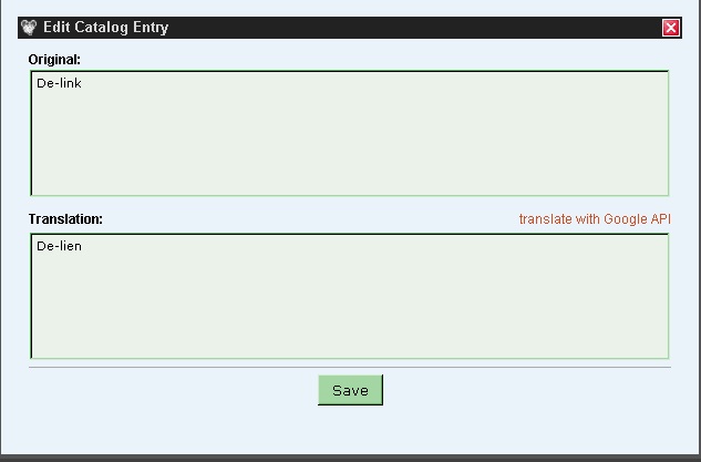 La traduction à l’aide de Google est tout à fait optionnelle, et on peut enregistrer ses propres chaînes traduites dans les fichiers de langue gérés par CSL.