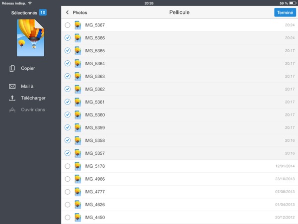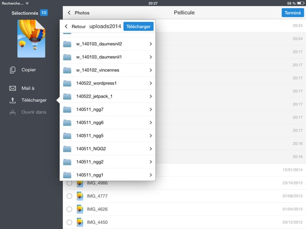 Évidemment, avec l’iPad, c’est un peu moins pratique qu’avec un ordinateur, notamment en ce qui concerne le traitement des images. Avec les outils dont je dispose, je ne peux pas renommer les images, et donc les afficher dans l’ordre souhaité. En outre, les images redimensionnées ne sont pas aussi nettes que celles que je modifie sur mon Mac avec iResize.