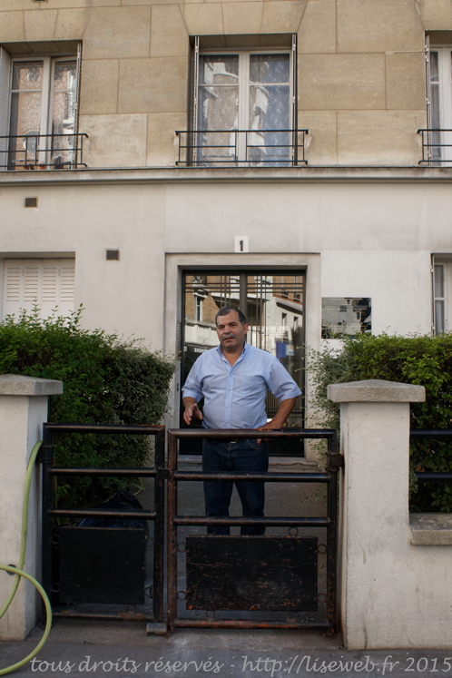 A l’angle de la rue Pelleport, au 1, rue de la Cour des Noues, le gardien de l’immeuble, Juan, m’a demandé de le photographier ! Il exerce depuis 25 ans et prendra sa retraite à la fin de l’année, il souhaitait un petit souvenir !