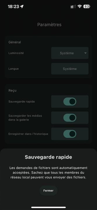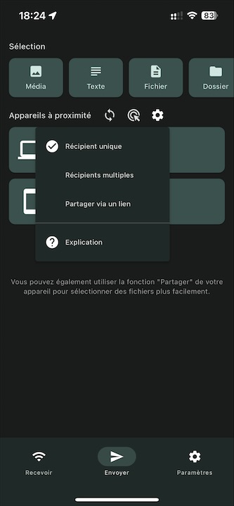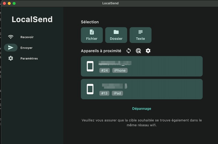 LocalSend, une alternative open source et multiplate-forme (Mac, Windows, Linux, Android, iPhone, F-Droid) à AirDrop. L’app fonctionne pas mal, dans certains cas mieux qu’AirDrop, elle nécessite que tous les appareils soient connectés au même réseau local et doit être ouverte sur chacun. Elle permet un échange de fichiers dans un environnement multiplate-forme, ce que je n’ai pas testé,