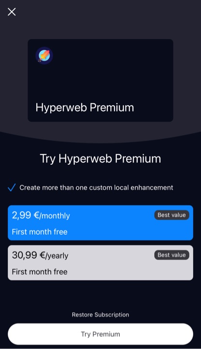 En cherchant un peu, je me suis rappelée qu’on pouvait installer des extensions pour Safari sous iOS ! J’ai commencé par installer Hyperweb, une extension qui offre de nombreuses possibilités : blocage des traqueurs, mode sombre…