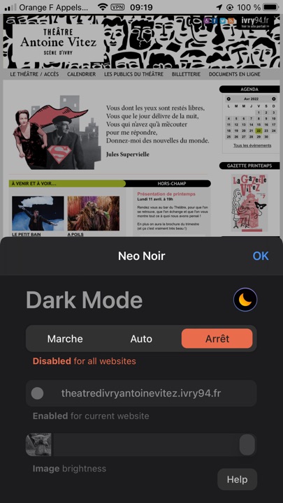 On peut, comme sur iPhone et Mac, activer/désactiver l’extension pour une page particulière, ce qui peut s’avérer pratique lorsqu’en mode sombre, elle n’est pas bien lisible.